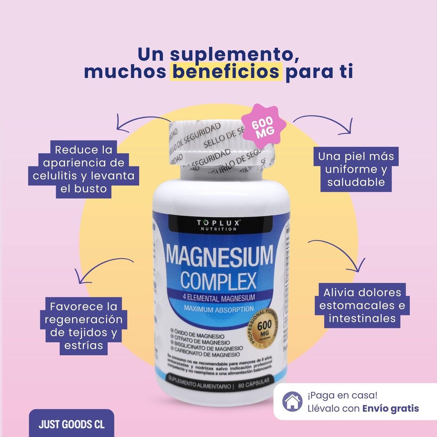 El Magnesio Complex suele ser muy bien tolerado por la mayoría de las personas, ya que es un suplemento natural. Sin embargo, si estás embarazada, en periodo de lactancia, bajo tratamiento médico o tomando medicación regular, lo ideal es consultar a tu especialista antes de consumirlo. Esto asegura un uso adecuado según tu situación personal.